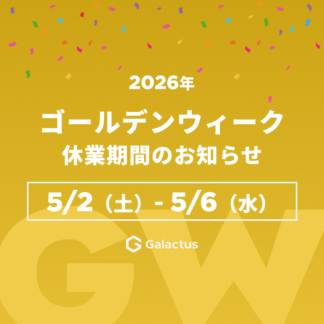 GW期間の営業についてのお知らせ – 2026年 2026.04.24 休暇等 2026年のゴールデンウィーク期間中の営業についてお知らせいたします。 休業日 5/2(土)〜5/6(水) ※5/7(木) より平常通り営業いたします。※平常時の定休日は 土・日・祝 となっています。 お問い合わせ対応について 上記休業期間中に頂きましたお問い合わせは、翌営業日より順次ご対応させていただきます。回答までにお時間をいただく場合がありますが、予めご了承下さい。 ご迷惑をおかけいたしますが、何卒ご容赦くださいますよう、お願い申し上げます。 前の記事 一覧へ戻る